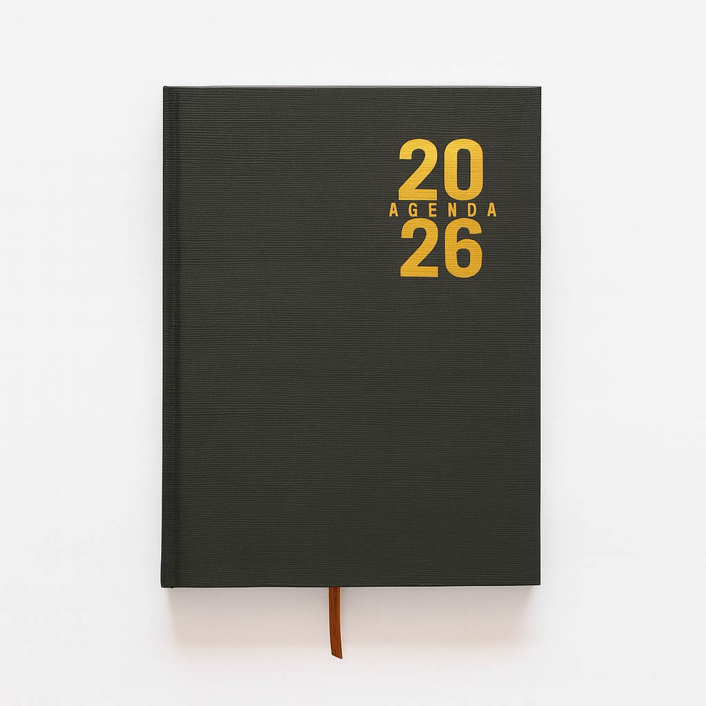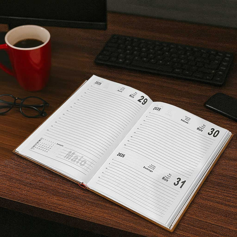 A Agenda 2026 Executiva conta com uma capa dura sofisticada, em material texturizado, trazendo um design elegante e moderno. O destaque fica por conta da marcação em dourado em alto-relevo, que valoriza ainda mais o visual do produto.