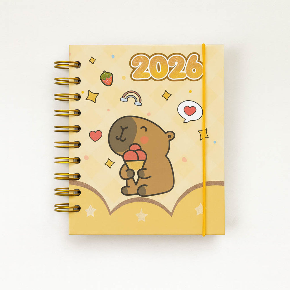 Com capa dura, espiral colorido e estampas super fofas de gatinhos, capivaras, unicórnios e cachorrinhos, ela é perfeita para quem busca organização e fofura no dia a dia.