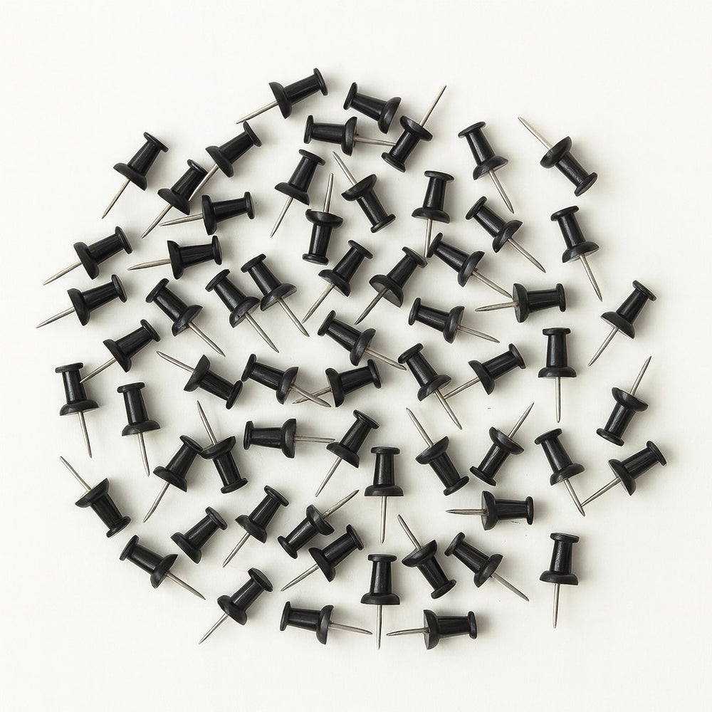 Os alfinetes tachinhas são práticos e resistentes, ideais para fixar papéis, lembretes, cartazes, fotos, avisos e até mesmo para marcar mapas em murais de cortiça, quadros de avisos ou outras superfícies compatíveis. Produzidos em metal com ponta afiada e cabeça plástica arredondada na cor preta, garantem firmeza e segurança no uso diário, além de proporcionarem fácil manuseio.
