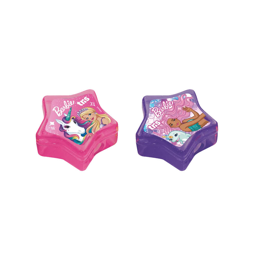 Desde 1959, a Barbie tem inspirado meninas a serem o que quiserem - fadas, princesas, astronautas e biólogas, não há limites! Barbie inspira crianças e jovens a explorarem sua personalidade e criarem seu próprio mundo. O apontador Barbie possui estampas divertidas e depósito que evita sujeira. Lâmina antiferrugem.
