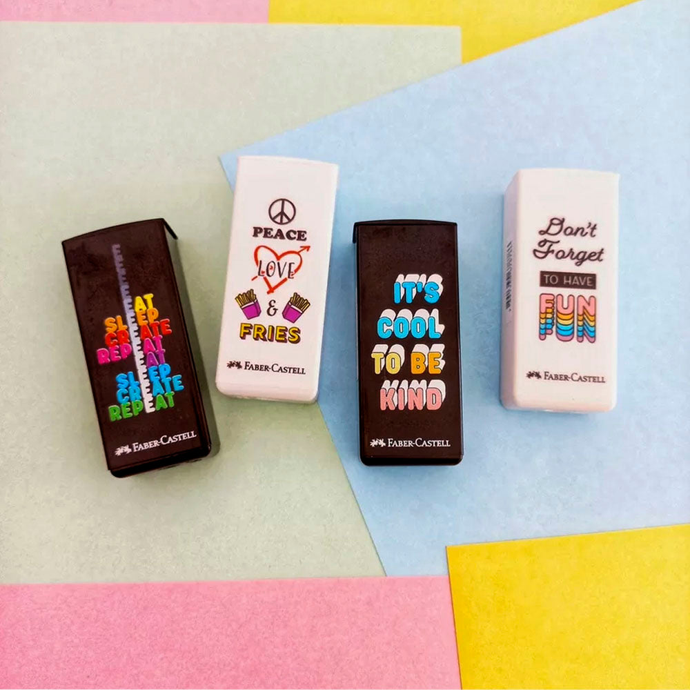 A qualidade dos apontadores Faber-Castell em 4 novas estampas atuais, modernas e colecionáveis para você escolher a sua preferida! O apontador com depósito garante maior praticidade, além de possuir lâmina de aço temperado que traz mais facilidade ao apontar.