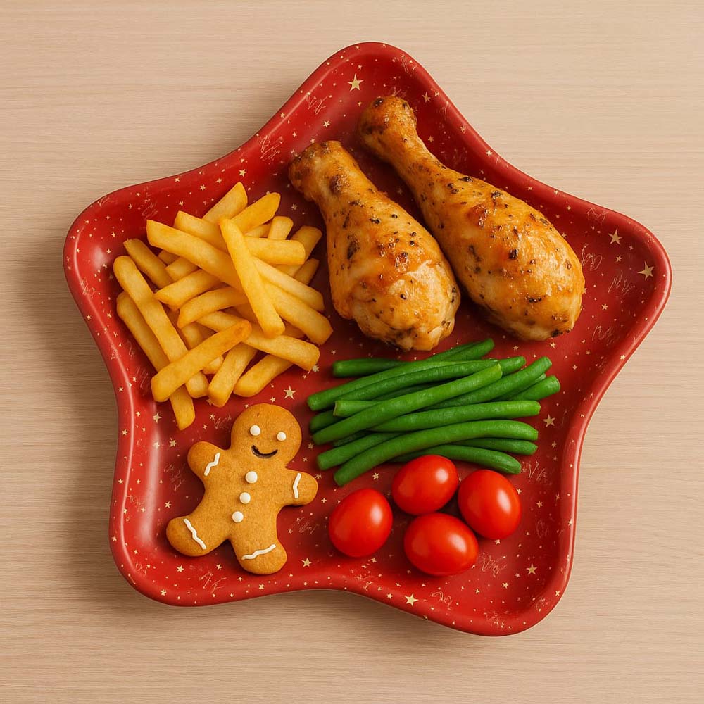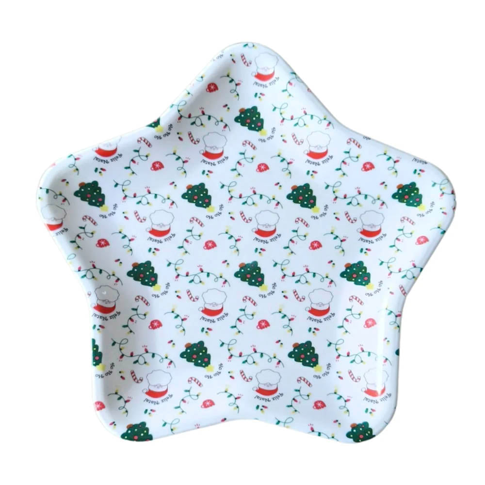 Esta bandeja é feita de plástico resistente, garantindo durabilidade e resistência ao uso diário. O destaque deste modelo de bandeja é a sua estampa natalina e seu formato de estrela, que adiciona um toque festivo e alegre ao seu ambiente.