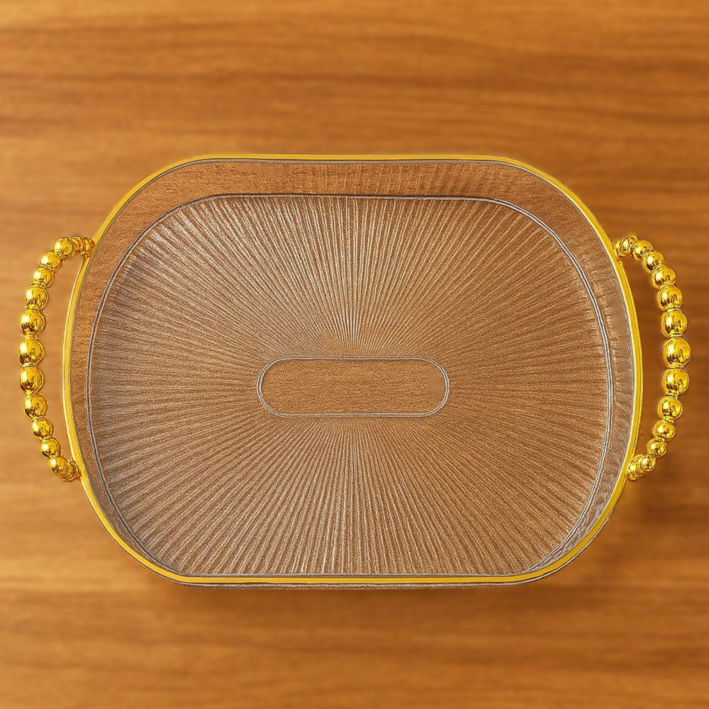 Design Sofisticado, com acabamento em acrílico transparente e textura, esta bandeja traz um toque moderno e refinado à sua decoração.