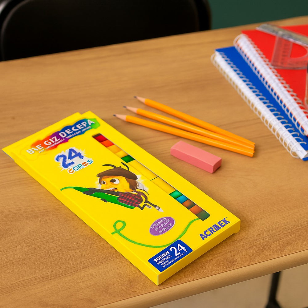 O Big Giz de Cera Acrilex com 24 cores é perfeito para estimular a criatividade e o desenvolvimento das crianças, oferecendo cores vivas e traços suaves em diferentes tipos de papel.