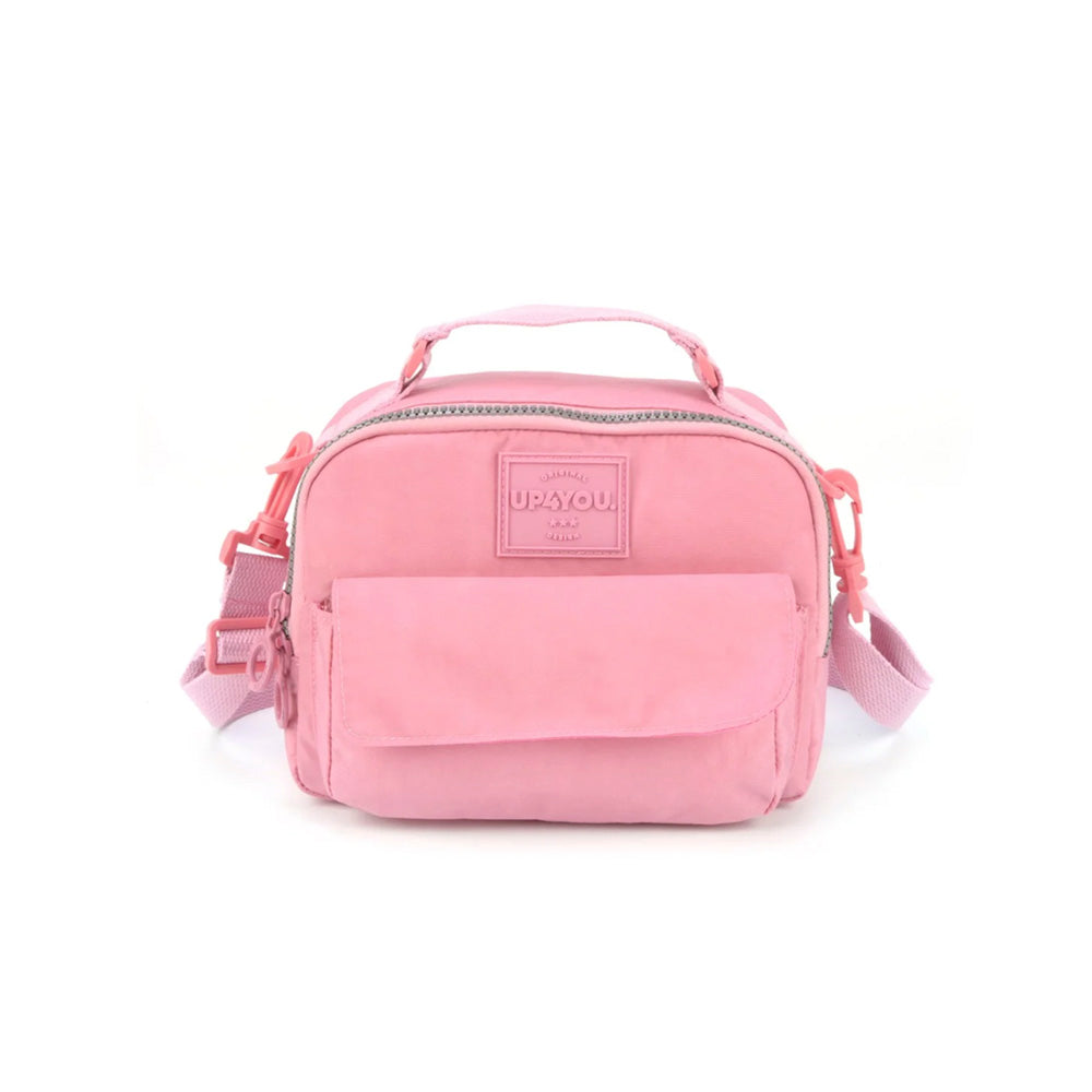 Possui: compartimento principal espaçoso,bolso frontal para pequenos objetos, alça de mão e alça transversal ajustável.
