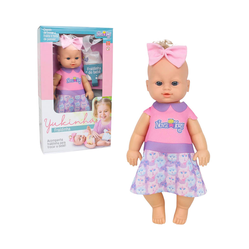Boneca Bebê Yukinha Fraldinha Com Lacinho Infantil, perfeita para estimular o cuidado e a imaginação das crianças. Feita com materiais seguros e de alta qualidade, é o presente ideal para momentos de carinho e diversão.