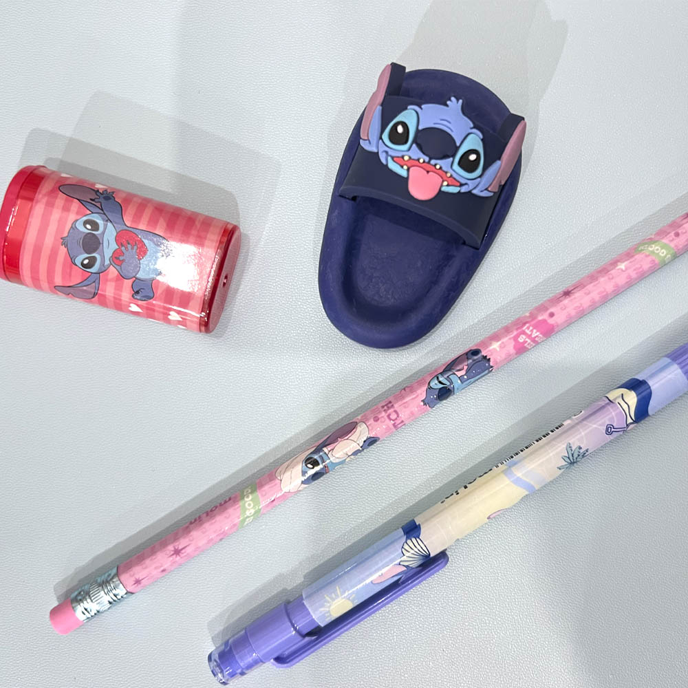 Divertida e cheia de personalidade, essa borracha é perfeita para quem adora unir praticidade e estilo no material escolar. Inspirada no personagem Stitch, da Disney, ela traz um design fofo e colorido que chama a atenção logo de cara.