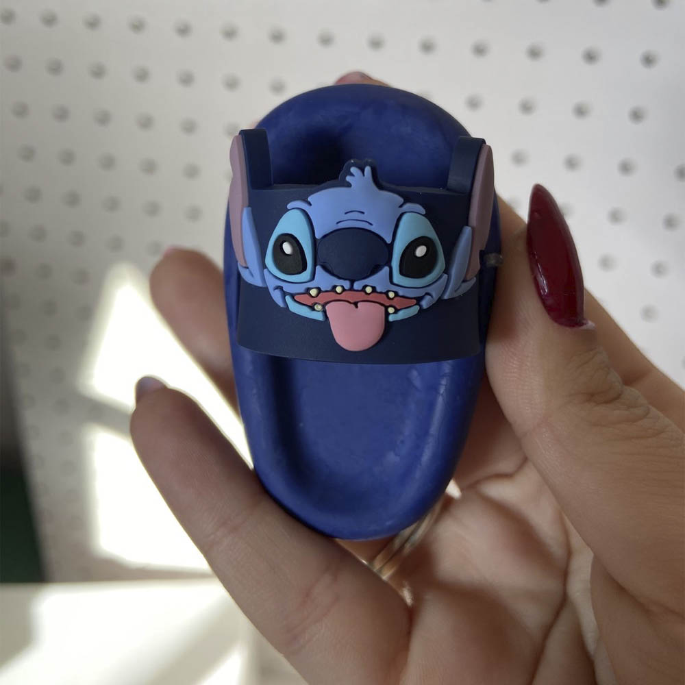 Design: Formato de chinelo com personagem Stitch em relevo.