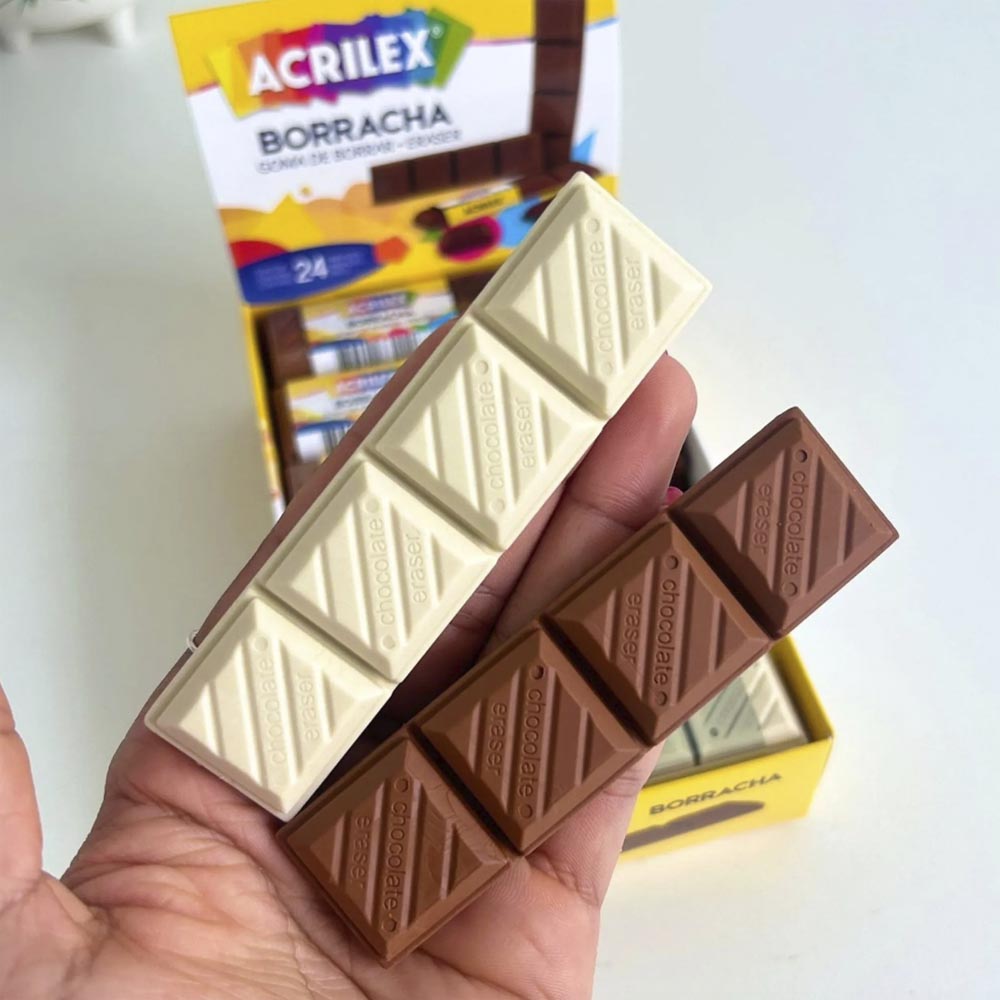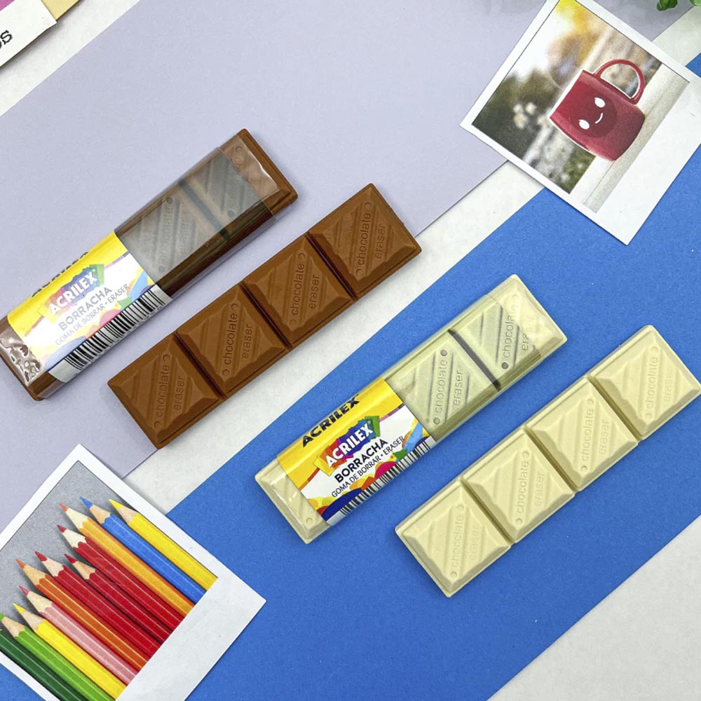 A Borracha Divertida Barrinha De Chocolate é um item prático e divertido que transforma as tarefas escolares em momentos super divertidos. Com um design único que imita uma barrinha de chocolate, essa borracha é macia e eficiente para apagar lápis grafite com facilidade e precisão. Disponível em 2 (dois) modelos e vem nas cores marrom e branco para você escolher a sua preferência. Ela é perfeita para crianças, adolescentes e até mesmo adultos que desejam um material funcional e com um toque de estilo e diversão.