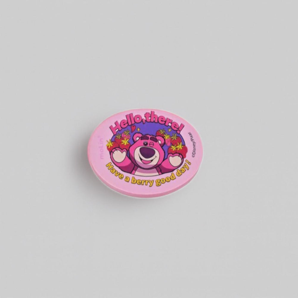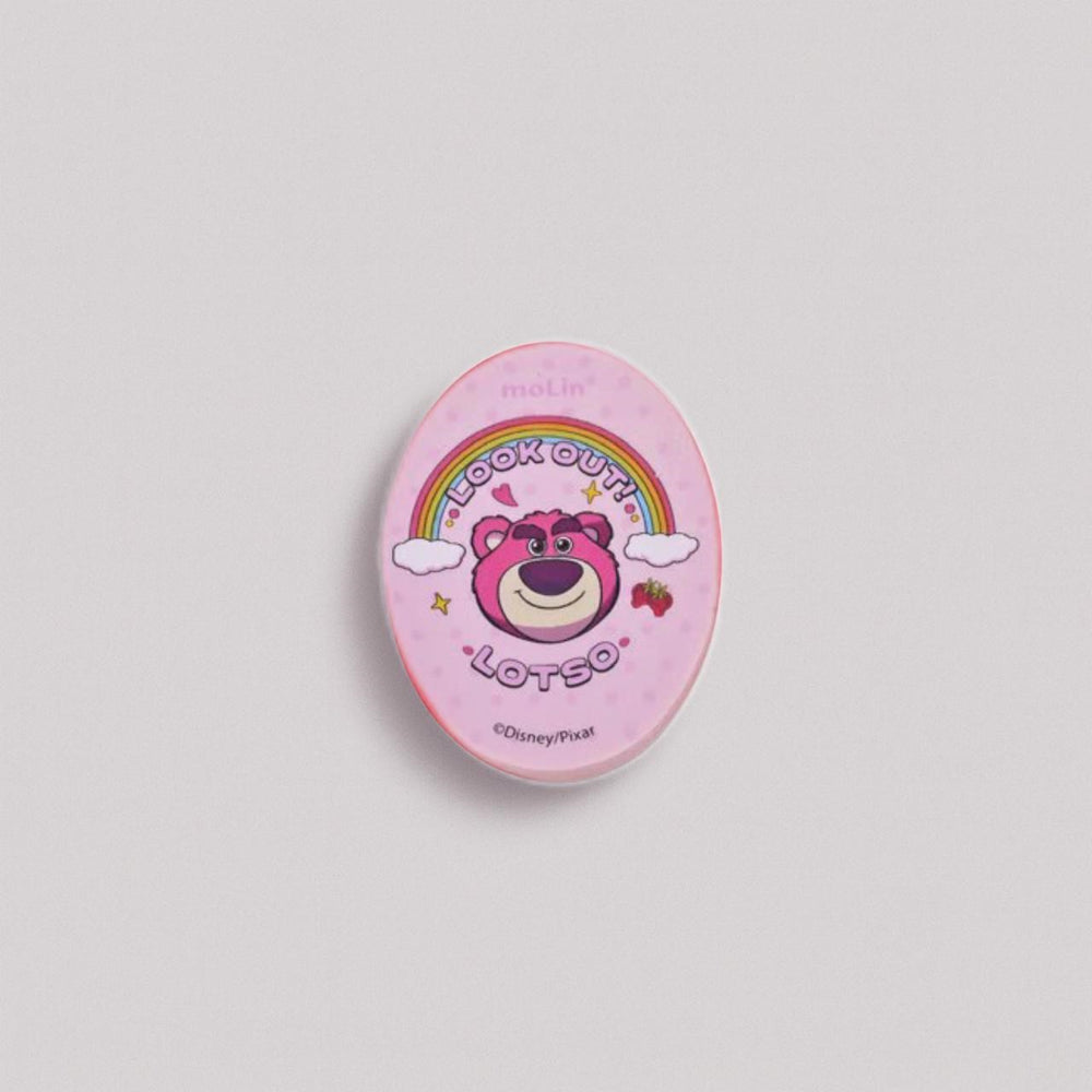 Borracha divertida e colecionável inspirada no personagem Lotso, o ursinho rosa de Toy Story. Cada unidade traz uma estampa exclusiva, colorida e cheia de charme, perfeita para quem adora o estilo fofo e alegre do personagem.