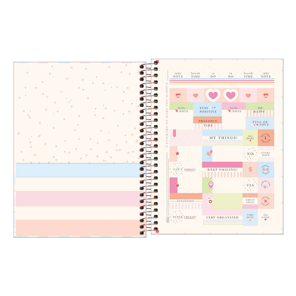 O Caderno Espiral Capa Dura Colegial 1 Matérias Soho 80 Folhas possui formato inovador e compacto, ideal para quem gosta de praticidade. Possui 80 folhas, capa dura com a parte interna decorada, bolsa de papel decorada, folha com adesivos funcionais e folhas pautadas destacáveis.