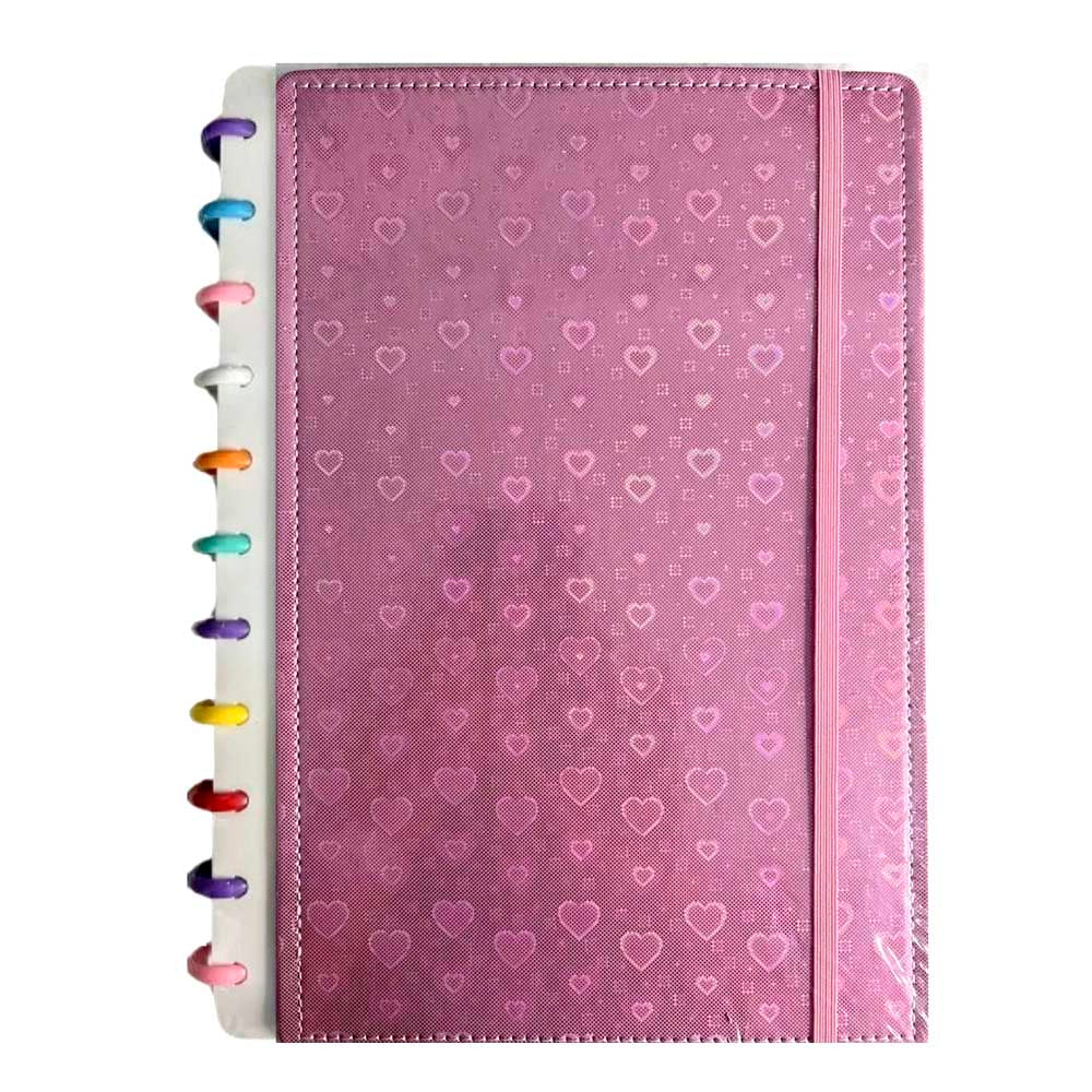 O Caderno De Disco Holográfico Coração é a escolha perfeita para quem busca organização, praticidade e estilo. Com ele, você personaliza sua organização, escolhe as folhas e acessórios que mais combinam com você e monte seu caderno do zero. Libera a criatividade: Rabisque, desenhe, escreva e organize suas ideias com cores vibrantes e alegres. Facilita os estudos com as folhas reposicionáveis te permitindo reorganizar as páginas quantas vezes quiser, sem precisar riscar ou começar tudo de novo.