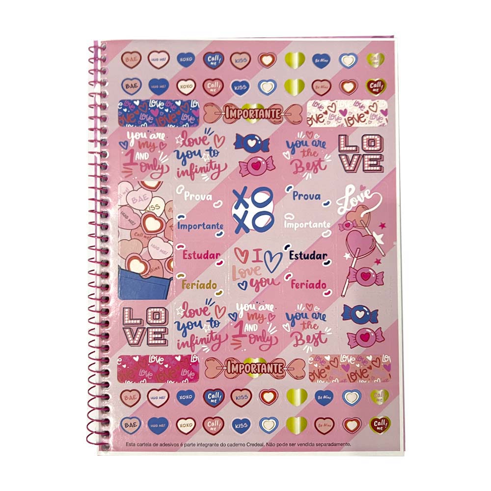 Caderno Universitário 1 Matéria Love Credeal é o caderno mais fofo que você vai ver! Disponível em 2 estampas diferentes ele vem com folha de adesivos, divisória com bolsa de papel para guardar suas folhas ou anotações a parte e folha para anotações e lembretes.