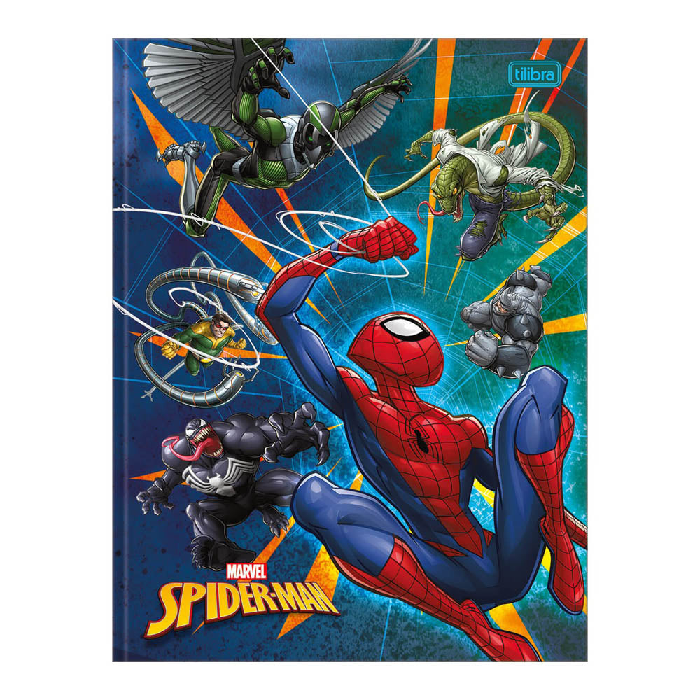 O Caderno Brochura Capa Dura Universitário Spider-Man 80 Folhas possui capa dura com a parte interna decorada, folha de adesivos e folhas pautadas. Ideal para o dia a dia na escola.