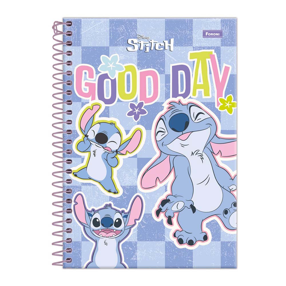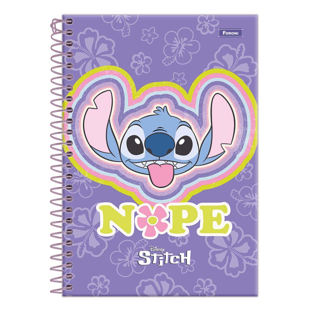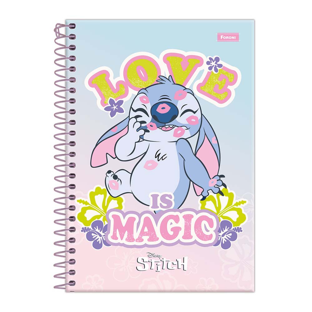 O caderno espiral universitário Stitch possui capa dura com laminação fosca, verniz reserva, parte interna decorada, bolsa de papel decorada para guardar trabalhos e anotações, adesivos, folhas com pauta básica e espiral branco. Ideal para o dia a dia na escola ou na faculdade.