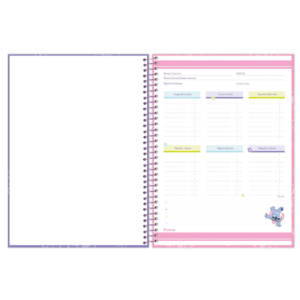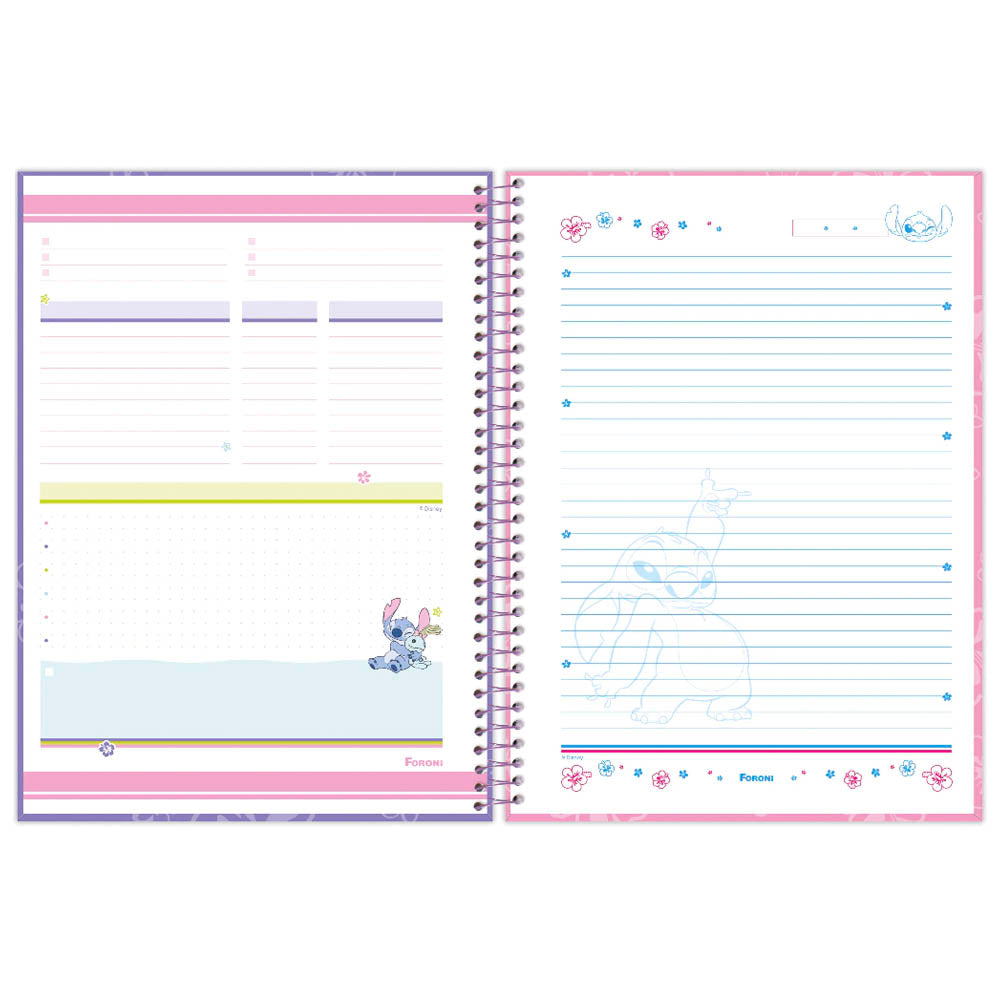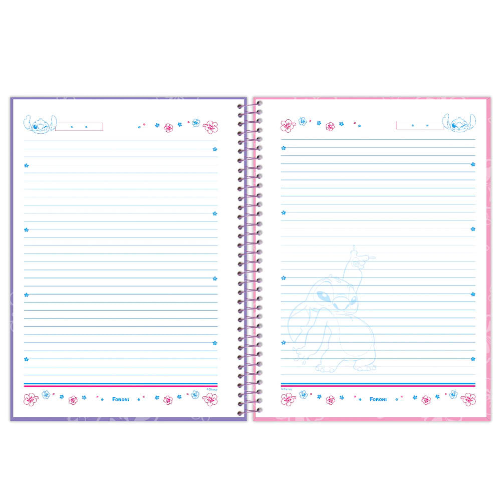 O caderno espiral universitário Stitch possui capa dura, parte interna decorada, bolsa de plástico para guardar trabalhos e anotações, adesivos super fofos, folhas com pauta e uma linda decoração. Ideal para o dia a dia na escola ou na faculdade. Você vai se apaixonar por esse caderno do monstrinho azul mais amado da galera.