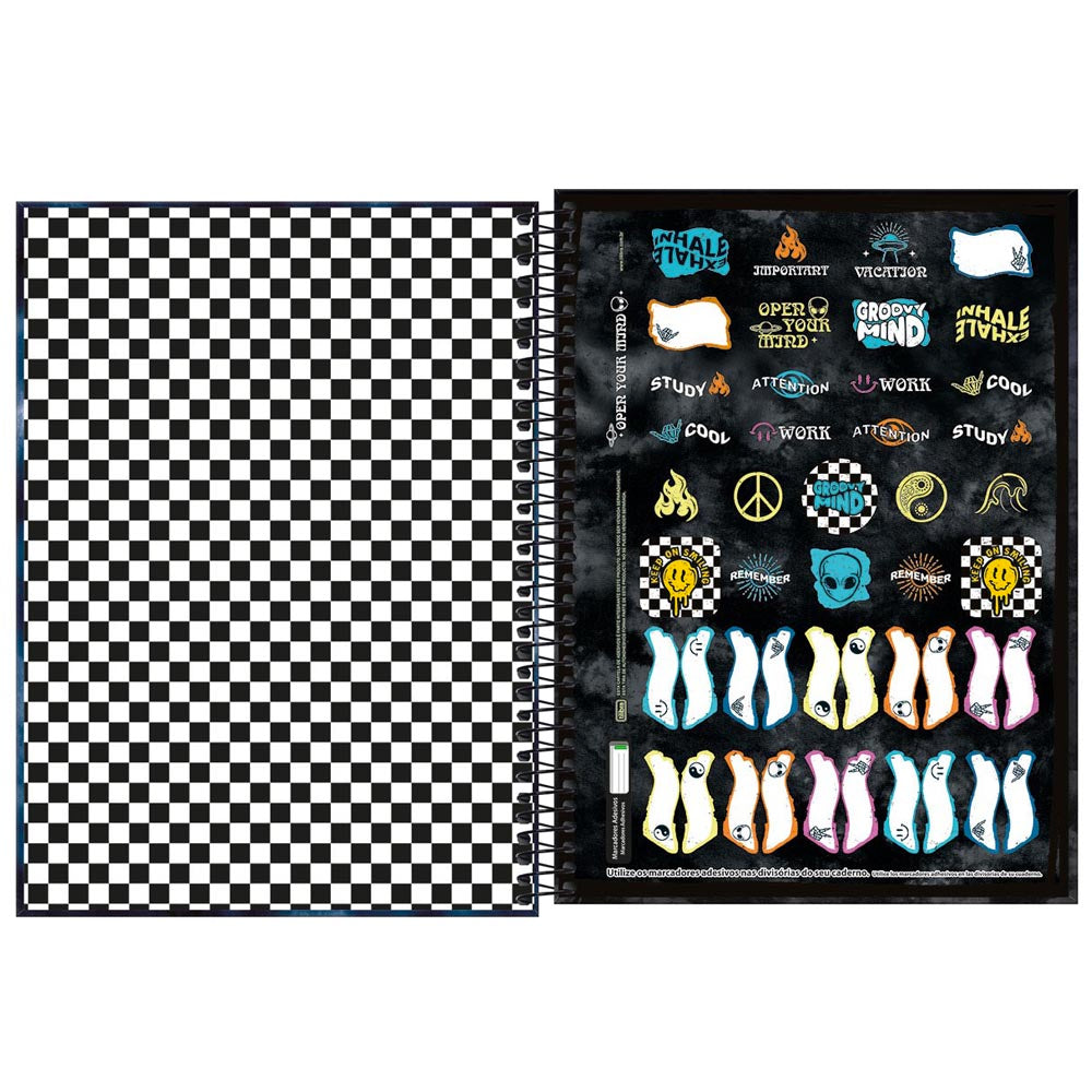 O Caderno Espiral Capa Dura Universitário 1 Matéria Hype 80 Folhas possui capa dura com a parte interna decorada, bolsa plástica para guardar trabalhos e anotações, folha com adesivos funcionais, folhas pautadas e espiral. Ideal para o dia a dia na escola ou na faculdade.