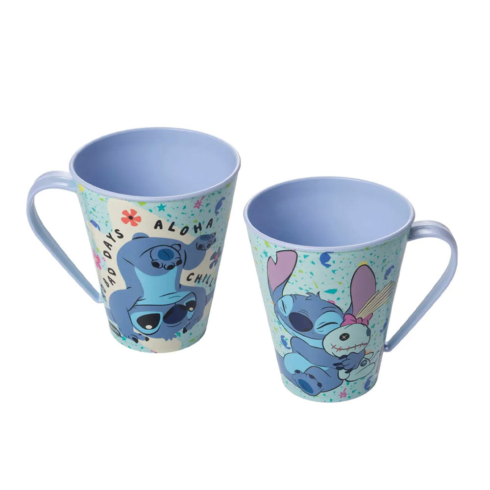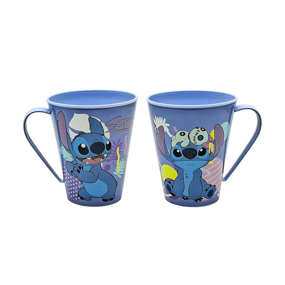 A Caneca De Plástico Stitch e Angel 360ml com alça é perfeita para os fãs do icônico personagem da Disney.