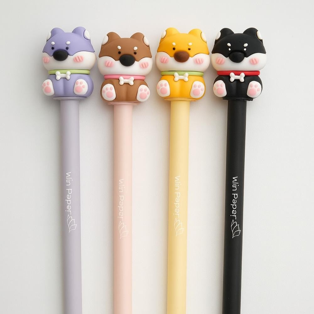 Essas canetas gel apagáveis unem praticidade e fofura em um só produto. Cada modelo vem com um topper em formato de cachorrinho 3D super fofo. Disponíveis nas cores lilás, rosa claro, amarelo pastel e preto. Além do design encantador, a escrita é feita com tinta em gel azul, ponta 0.7mm, garantindo traço macio e preciso, e a função apagável permite corrigir com facilidade sem borrar o papel.