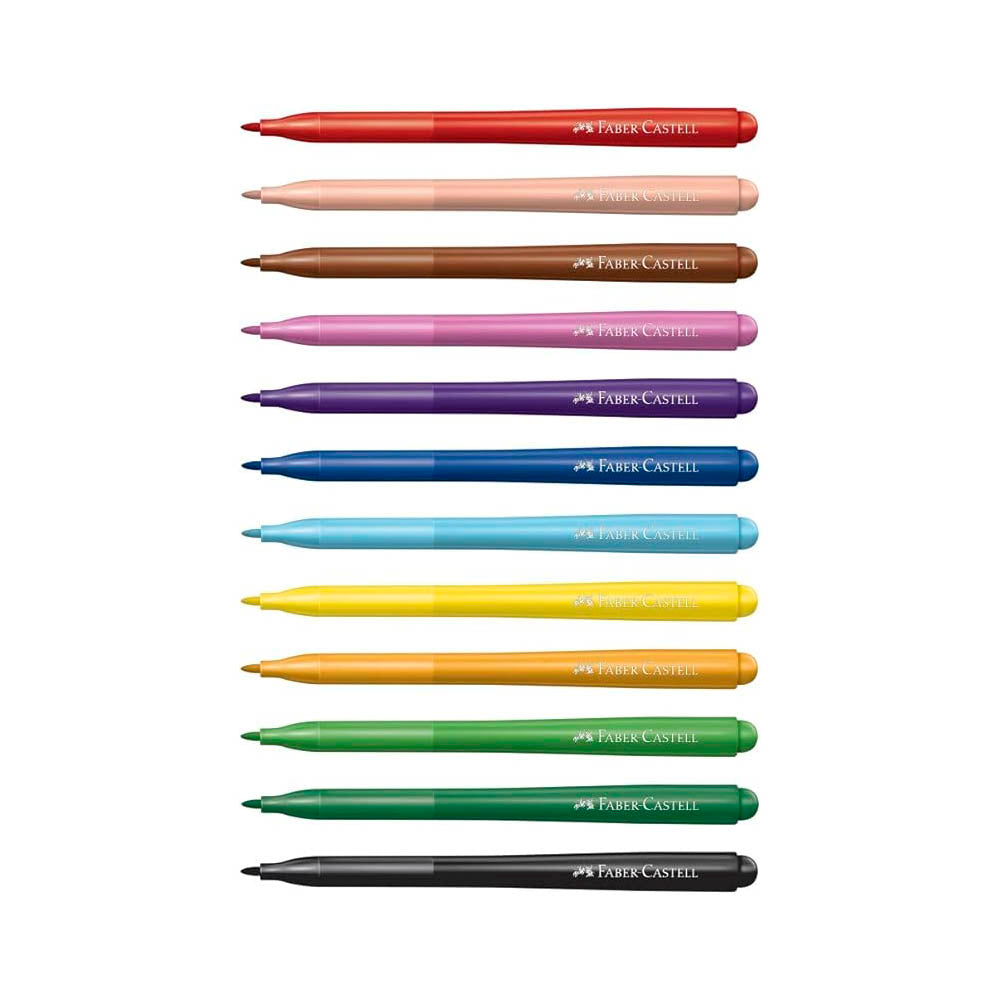 As Canetinhas Hidrocor Vai e Vem com 12 cores da nossa querida Faber Castell estimulam a criatividade das crianças com a formulação exclusiva de corantes de alta qualidade com cores mais vivas, tem ponta média com a tecnologia exclusiva da ponta Vai e Vem: sistema de amortecimento contra impactos, garantindo maior resistência e durabilidade