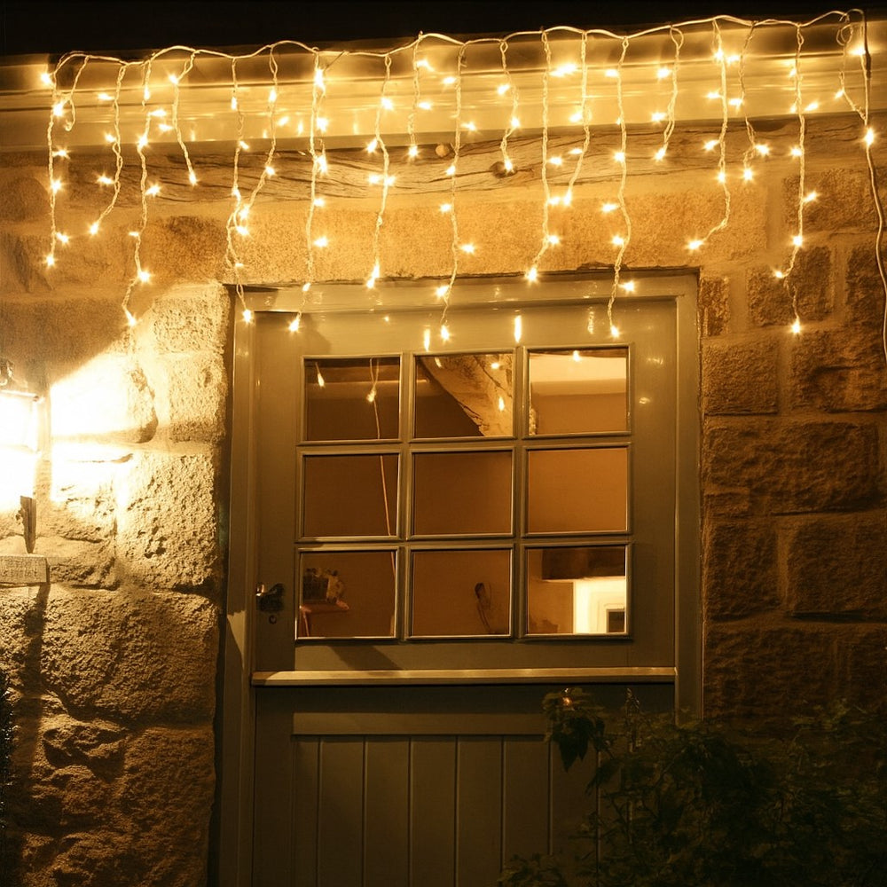 Deixe seu Natal mais encantador com essa linda Cascata com 100 lâmpadas, ela possui 8 funções e fio transparente.