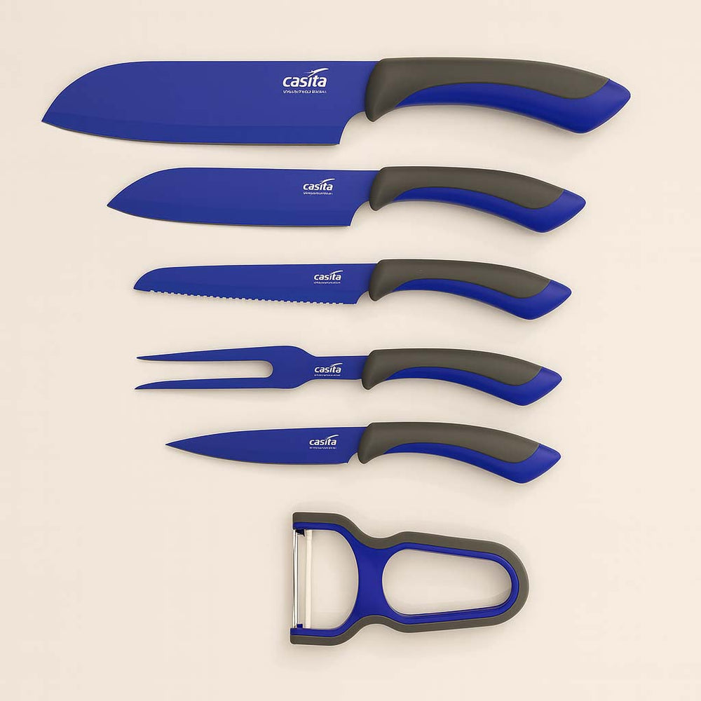 O Conjunto de Facas Casita 6 Peças é ideal para quem busca praticidade e eficiência na cozinha. Com design moderno e acabamento em cores vibrantes, o kit oferece tudo o que você precisa para preparar suas receitas com mais agilidade e precisão.