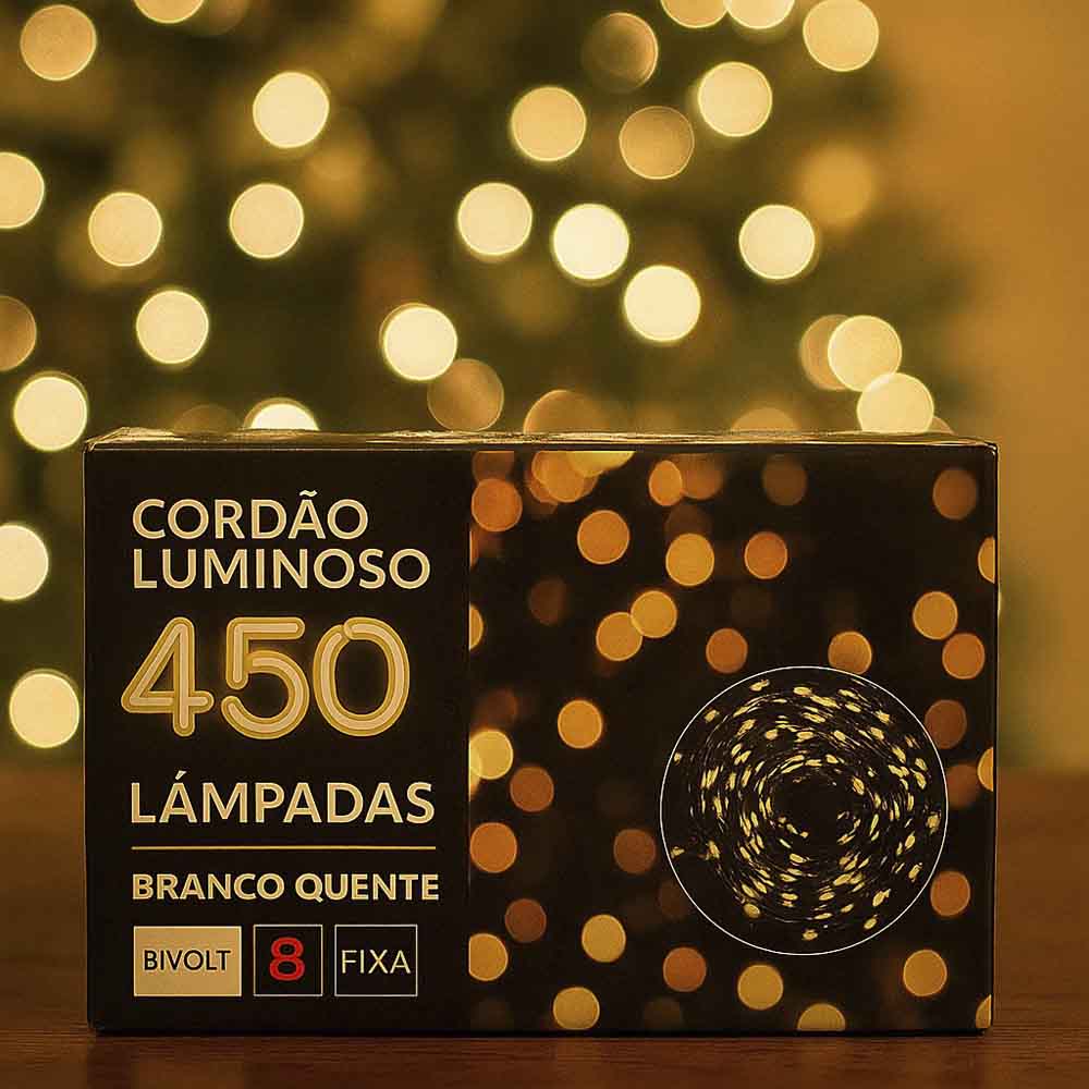 Ilumine o seu Natal com o charme e o aconchego do Cordão Luminoso de 450 Leds em Branco Quente! Ideal para decorar árvores de Natal, varandas, janelas, paredes ou qualquer ambiente que merece um toque especial de luz nesta época do ano. Com um brilho suave e elegante, a iluminação em branco quente cria uma atmosfera acolhedora e mágica, perfeita para deixar a sua decoração ainda mais encantadora. O cordão oferece 8 diferentes funções de iluminação, incluindo modos como sequencial e fixo, permitindo que você escolha o efeito que mais combina com o seu estilo de decoração.
