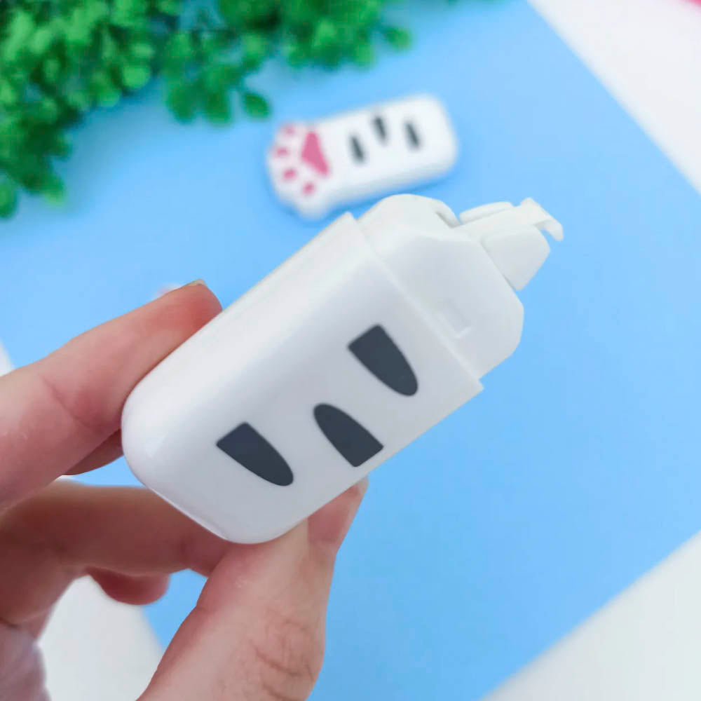 Um corretivo em fita super fofo, com o formato de uma patinha de gato, ele vai ficar lindo junto com o seu material! Fita corretiva não tóxica e sem cheiro além de possuir uma tampa, com tamanho de 5mmx5m, essa fita não tem a intenção apenas em ser corretiva, mas em ser delicada também! Possui alta qualidade, é fácil e prática. Além disso, você não precisa se preocupar em esperar secar para utilizar ou em causar rasuras em seu caderno ou fichário.