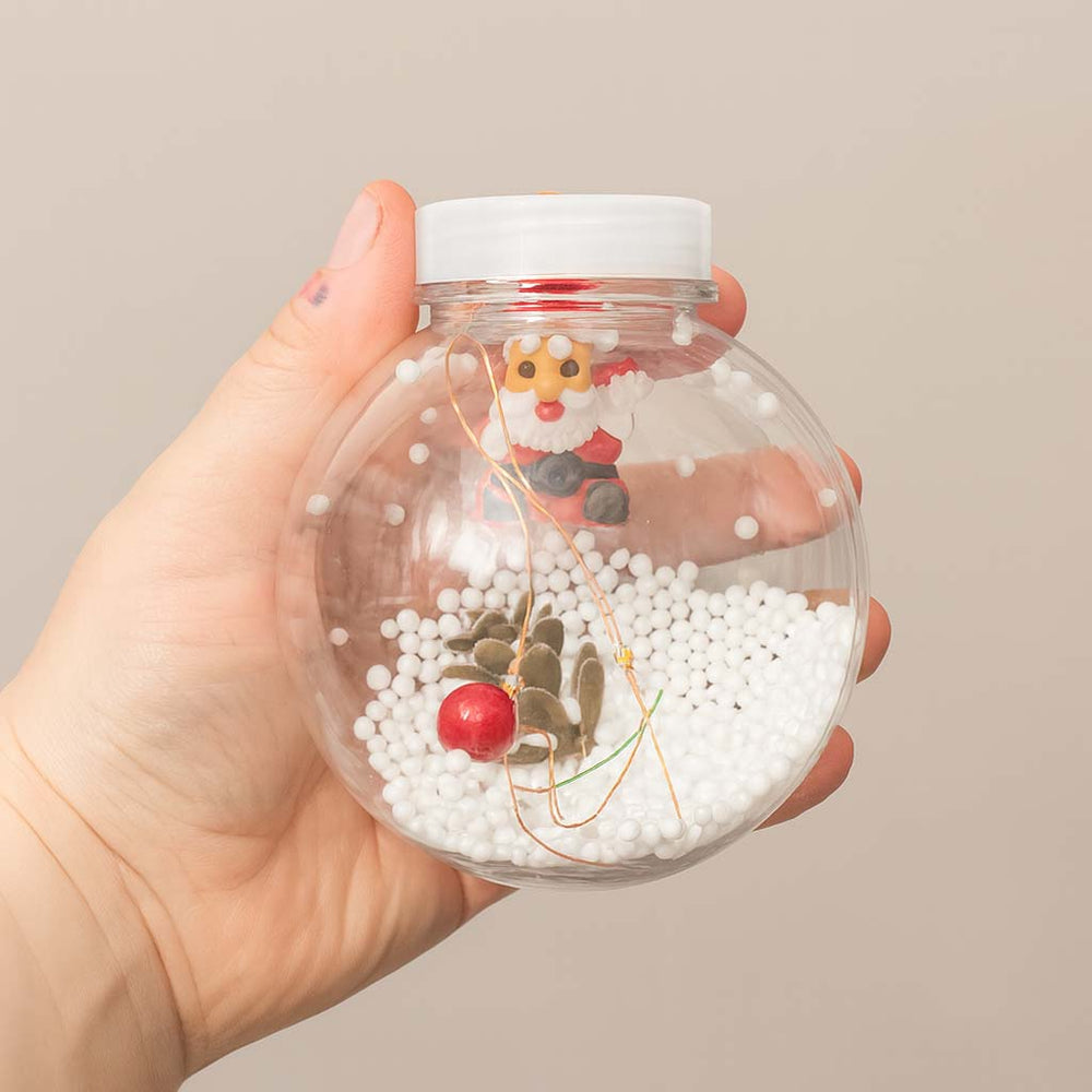 Possui 2 modelos disponíveis: o Modelo 1 apresenta Papai Noel com cereja e pinha dentro de uma bola transparente decorada. Essas esferas possuem flocos brancos que simulam neve.