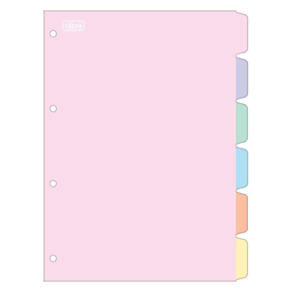 São 6 divisórias diferentes, no formato Universitário, ideais para a organização e separação de matérias nos cadernos argolados. As Divisórias possuem impressão nas cores rosa, lilás, verde, azul, laranja e amarelo.