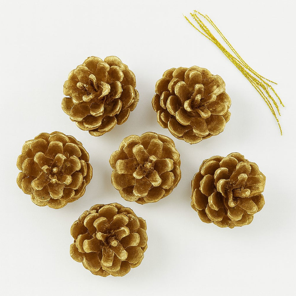 As pinhas são um clássico da decoração natalina, trazendo um toque rústico, elegante e acolhedor para qualquer ambiente. Cada embalagem contém 6 pinhas com aproximadamente 5cm e cordão dourado para facilitar a fixação, perfeitas para árvores de Natal, guirlandas, arranjos, centros de mesa ou embalagens de presentes.
