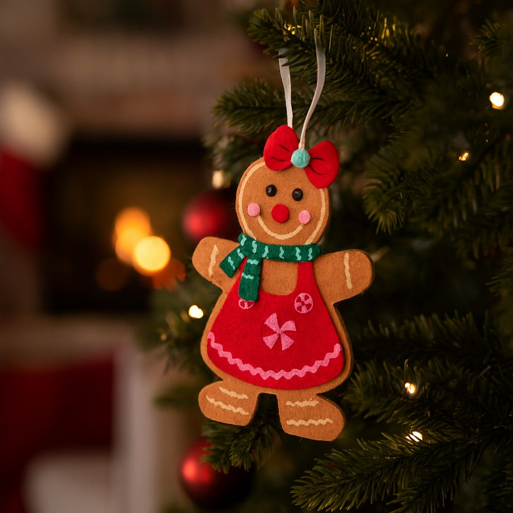 Possui duas versões encantadoras: o biscoito masculino com gorro de Papai Noel e cachecol verde, e o biscoito feminino com laço vermelho, avental e detalhes em formato de bala. Ambos vem com fita para pendurar facilmente na árvore, guirlandas ou outros cantinhos da casa.