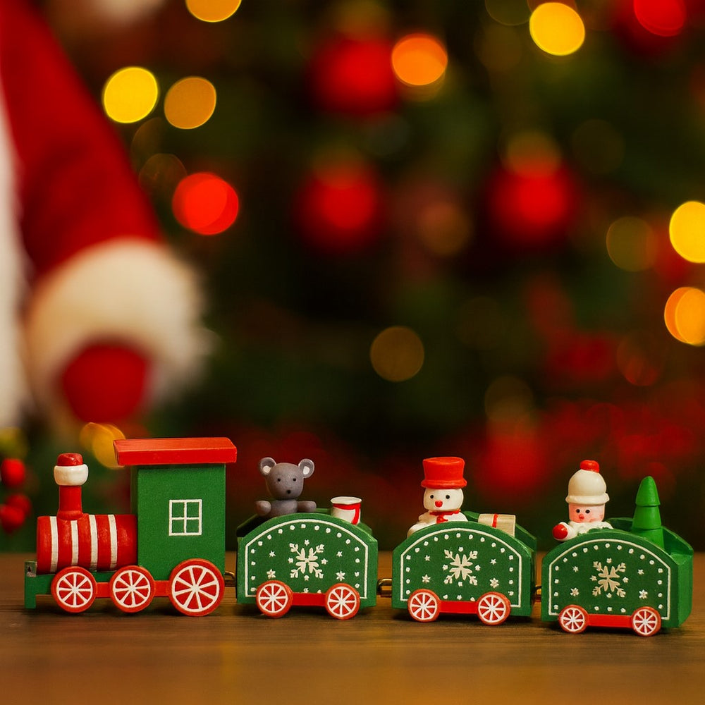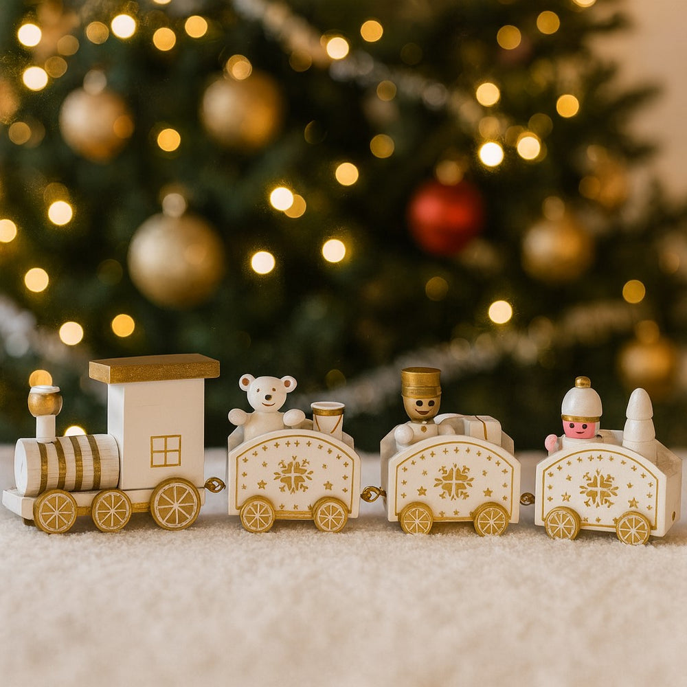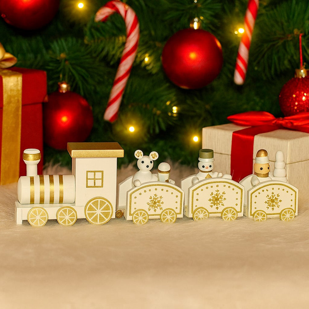 Encante sua decoração natalina com esse charmoso trenzinho em madeira pintado à mão, disponível em três versões de cores: vermelho, verde e branco.