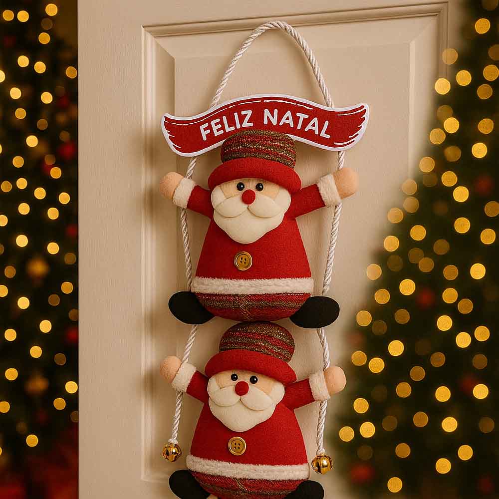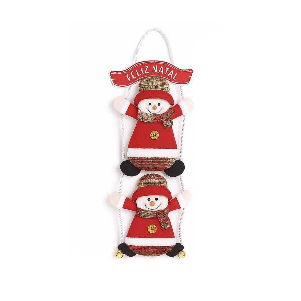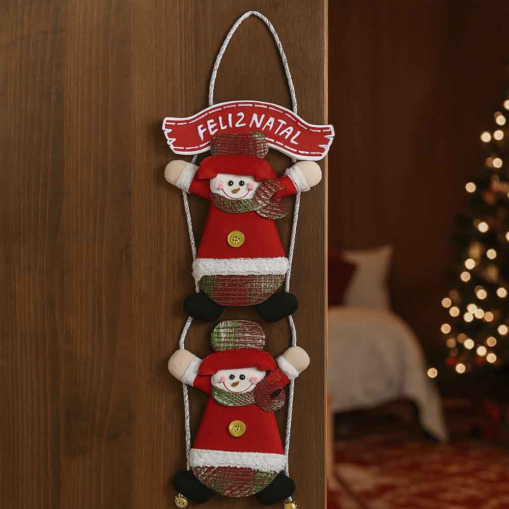 Deixe sua decoração natalina ainda mais encantadora com este lindo enfeite de pendurar! Composto por dois bonecos super fofos nos modelos disponíveis: Papai Noel ou Boneco de Neve, confeccionados em tecido macio com detalhes coloridos e acabamento em feltro, botões decorativos dourados e design alegre. Cada peça vem com cordas decorativas e guizos dourados nos pés, que emitem um som suave ao movimentar. A plaquinha com a mensagem “Feliz Natal” completa o charme e transmite o espírito natalino de forma calorosa e divertida. Ideal para pendurar em portas, paredes, janelas ou árvores de Natal. Uma opção perfeita para quem deseja trazer mais alegria, cor e encanto para o ambiente natalino!