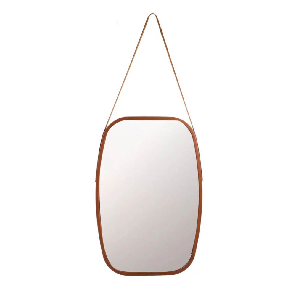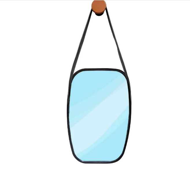 Espelho Retangular com Alça de Couro Com um design super moderno, tenha um espelho da moda super em alta! Ideal para colocar em qualquer ambiente, salas, quartos, banheiros, escritórios e hall! O espelho ajuda a dar impressão de amplitude ao cômodo.