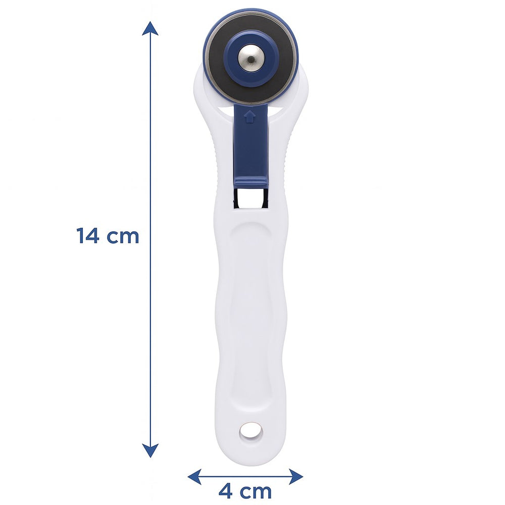 Lâmina circular de 28mm extremamente afiada para cortes limpos e contínuos.