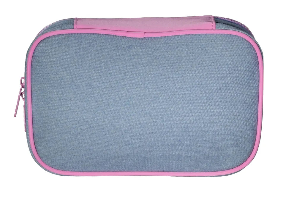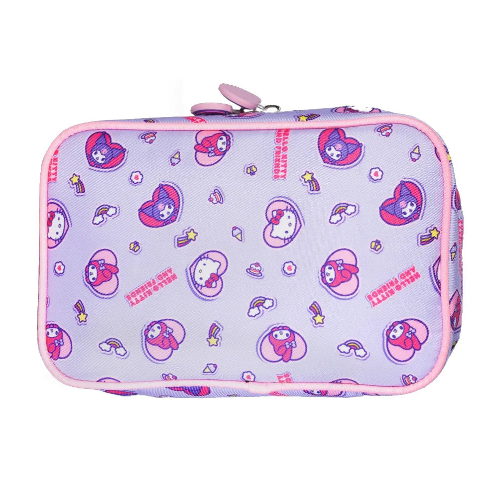 O Estojo Box Hello Kitty possui um design moderno e cheio de charme, está disponível em diferentes versões encantadoras, como o modelo com tecido jeans e detalhes em rosa, e o modelo holográfico “Hello Kitty and Friends”, que brilha com efeitos iridescentes e traz estampas divertidas das personagens mais queridas.