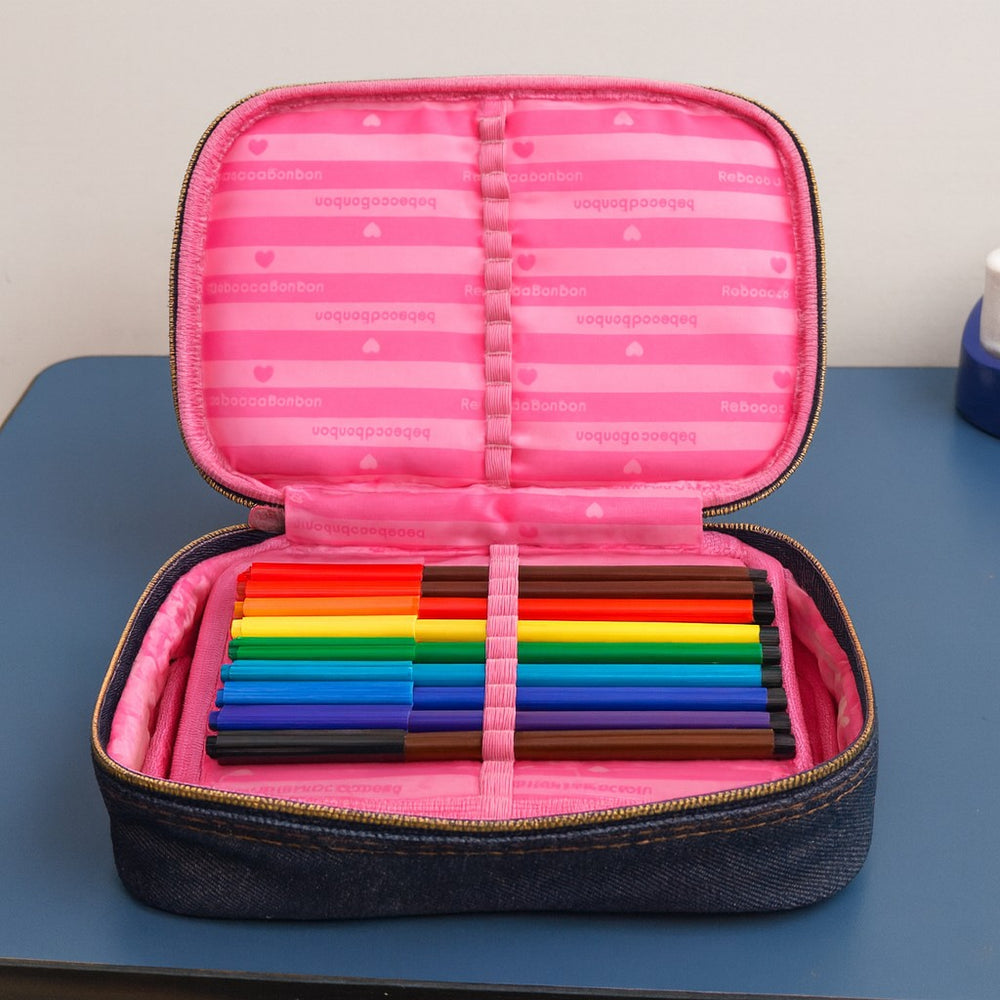 Estojo Box Rebecca Bonbon Jeans Denim Vintage é prático, espaçoso e ideal para quem possui muitos lápis, canetas e outros materiais e acessórios. Além de facilitar seu dia a dia na escola, esse estojo possui material resistente, é estruturado, espaçoso e possui divisória central com 36 elásticos que auxiliam na organização do material, ainda mais um compartimento interno para guardar outros acessórios, possuindo fechamento em zíper.