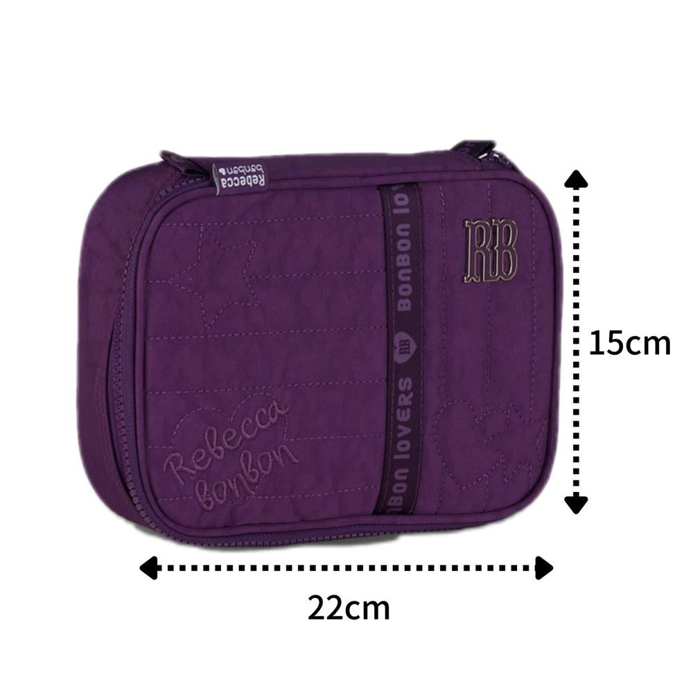 O estojo Rebecca Bonbon é perfeito para quem busca praticidade e estilo no dia a dia escolar ou de trabalho. Com design moderno e detalhes bordados em relevo, traz o charme da marca em cada detalhe, incluindo o logo metálico “RB” e a assinatura “Rebecca Bonbon”.
