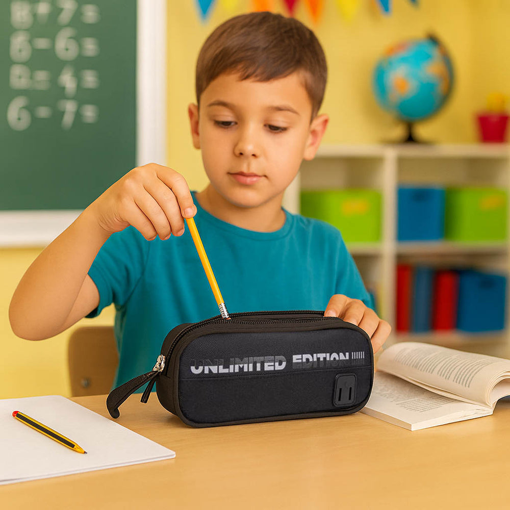 Praticidade, estilo e resistência em um só produto! O estojo Unlimited Edition foi desenvolvido para quem busca organização e design moderno no dia a dia escolar ou de trabalho. Disponível nas cores preto e cinza mesclado, ele traz um visual urbano e despojado, ideal para jovens que querem unir funcionalidade e personalidade.