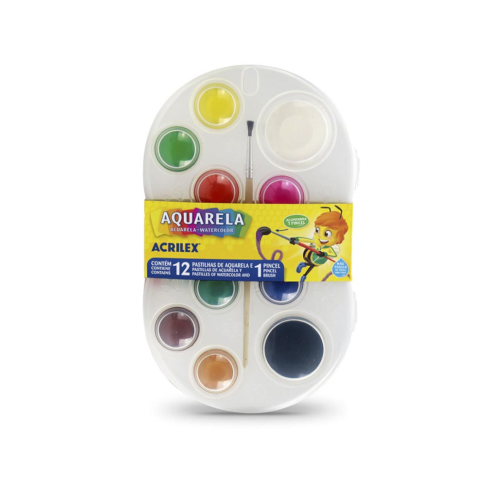 A Pastilha de Tintas Aquarela da Acrilex, é de primeira qualidade para todos que estão começando a estudar essa técnica. Ela é indicada para o uso de pintura em papel e papel cartão, e é miscível entre as suas cores. Conta com 12 Cores e possui solubilidade em água. Não tóxica.