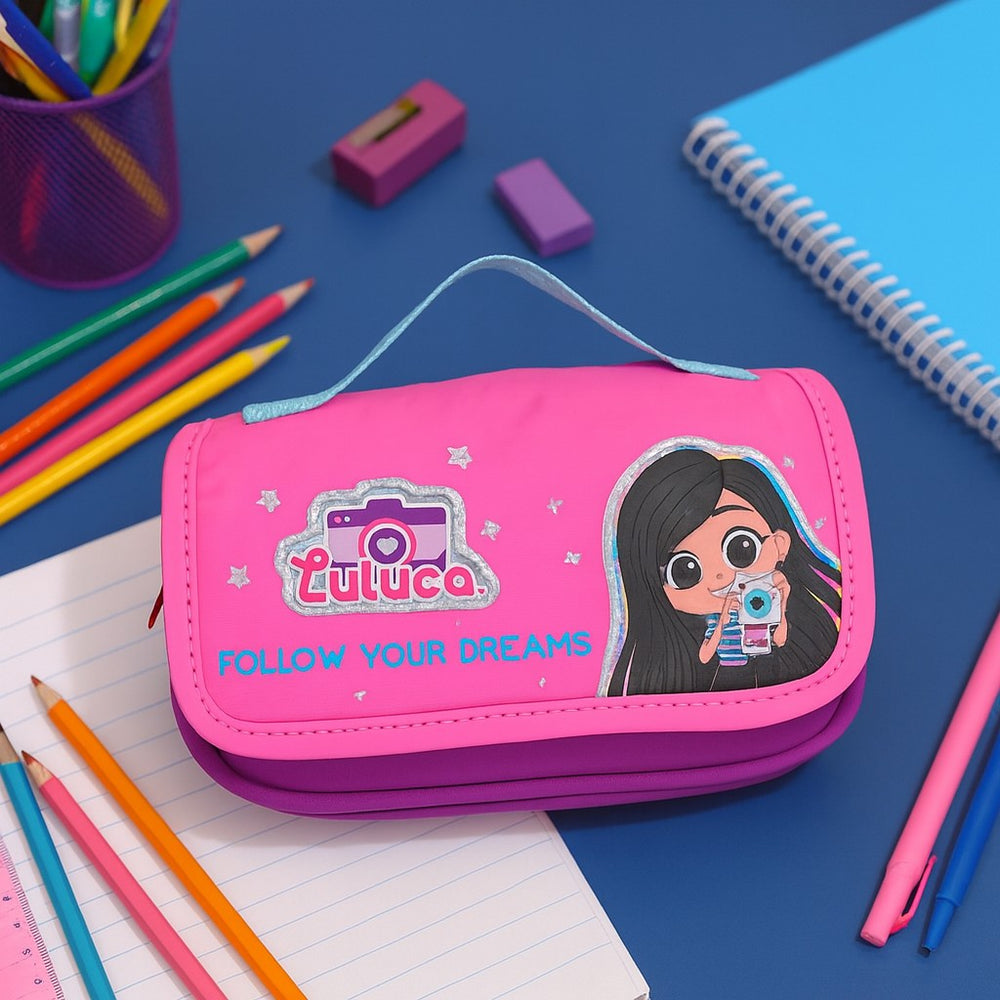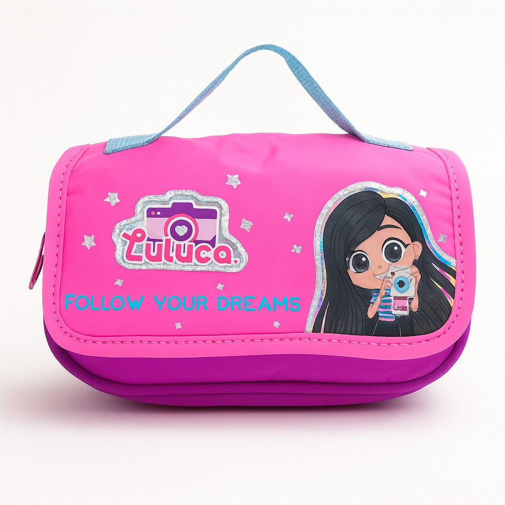 Na parte frontal, traz a estampa alegre da personagem Luluca com sua câmera e a frase inspiradora “Follow Your Dreams”, que estimula a criatividade e a confiança das crianças.