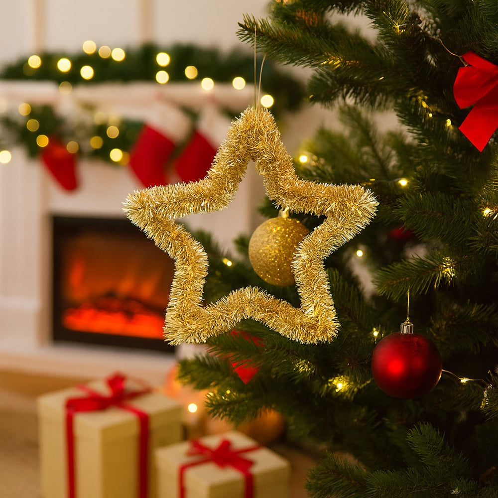 A estrela de natal costuma ficar em destaque no topo da árvore, mas também é comum vê-la na decoração de casa, inclusive no lugar da guirlanda, enfeitando a porta de entrada.