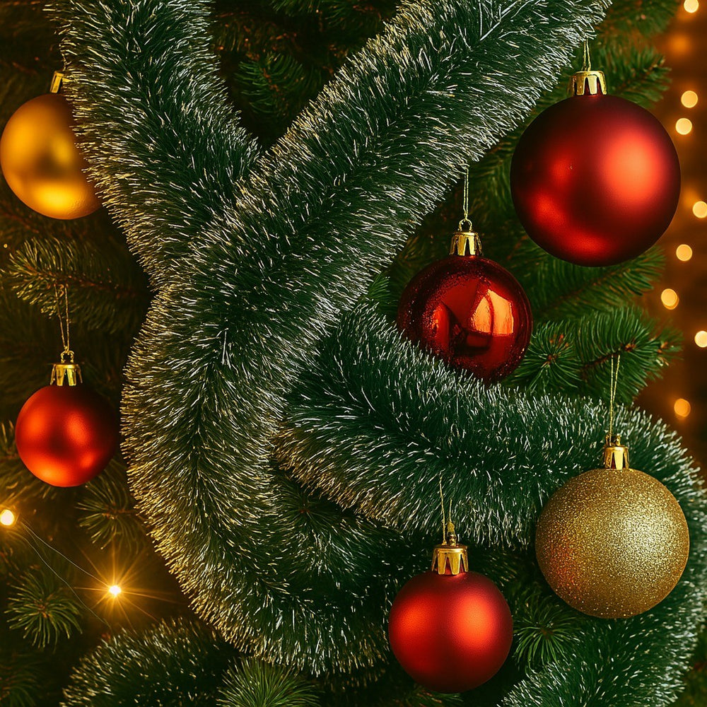 A decoração de fim de ano pode ficar mais bonita e criativa usando o festão de Natal, um enfeite que dá pra colocar na árvore ou em outros enfeites, como guirlandas! Ele é levinho e também deixa incrível sacadas, corredores e corrimãos!