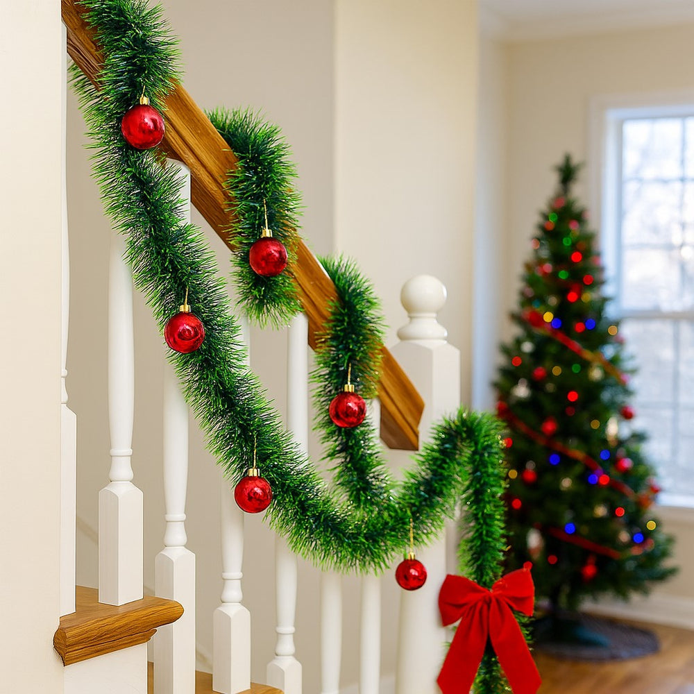 A decoração de fim de ano pode ficar mais bonita e criativa usando o festão de Natal, um enfeite que dá pra colocar na árvore ou em outros enfeites, como guirlandas! Ele é levinho e também deixa incrível sacadas, corredores e corrimãos!