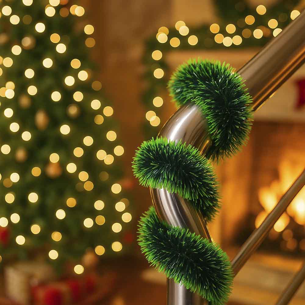 A decoração de fim de ano pode ficar mais bonita e criativa usando o festão de Natal, um enfeite que dá pra colocar na árvore ou em outros enfeites, como guirlandas! Ele é levinho e também deixa incrível sacadas, corredores e corrimãos!