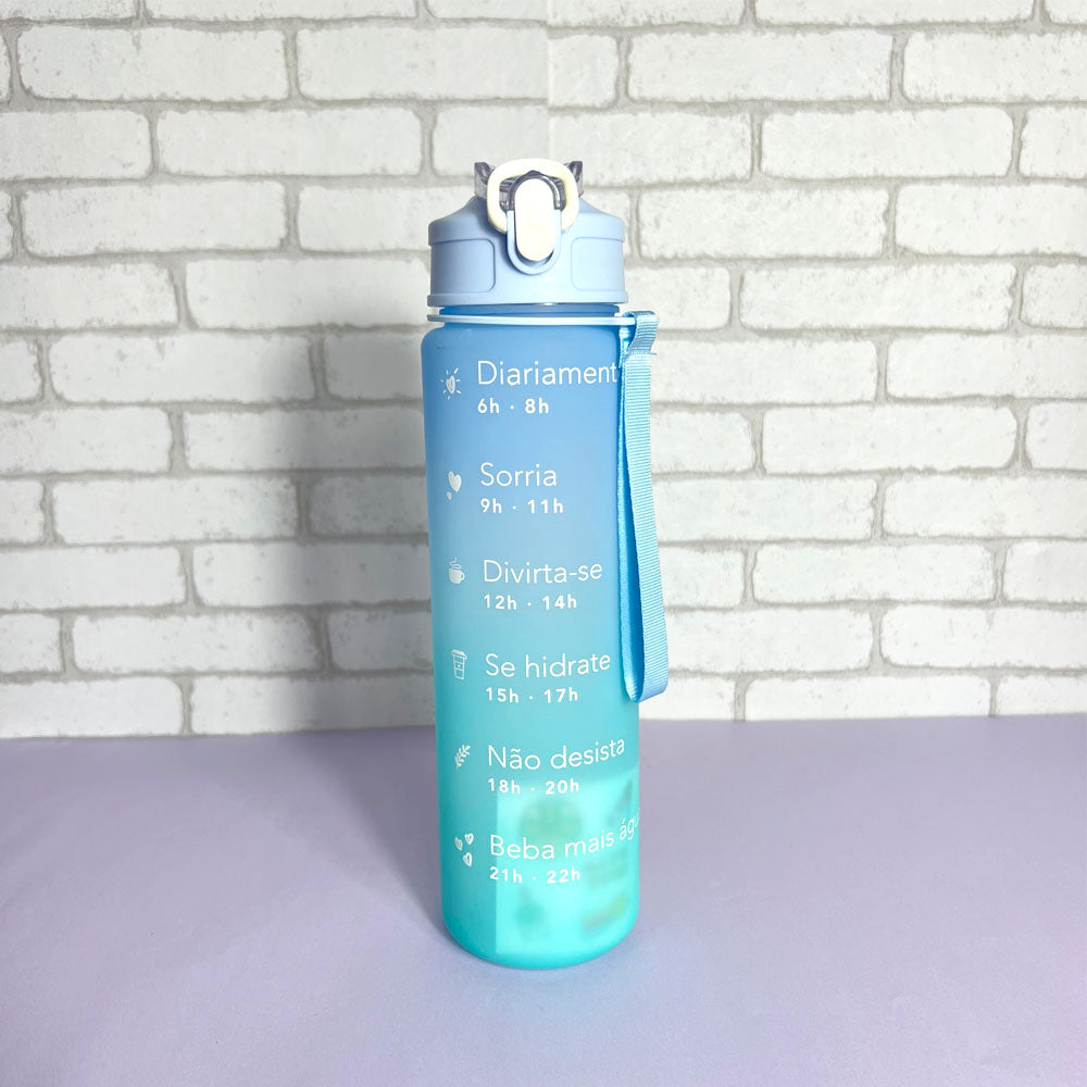Essa incrível garrafa squeeze degradê em lindas cores pasteis de 800ml vem decorada com lindas frases motivacionais e adesivos para decorar sua garrafinha para que a cada vez que você vá beber água, você faça com alegria e motivação, sem uma gota de preguiça e sem achar chato ter que ficar se hidratando de tempos em tempos, por incrível que pareça em uma pesquisa realizada sobre o assunto, os resultados mostraram que quase 50% das pessoas não bebem água coma devida frequência ou na devida quantidade.