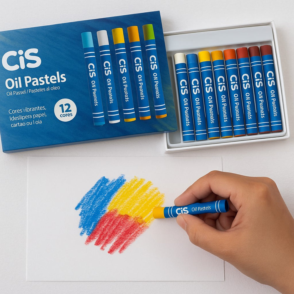 Giz pastel oleoso com 12 cores. Indicado para pinturas, ilustrações, desenhos, esboços, cartazes, murais, retratos, caricaturas, ensino técnico, entre outros usos.