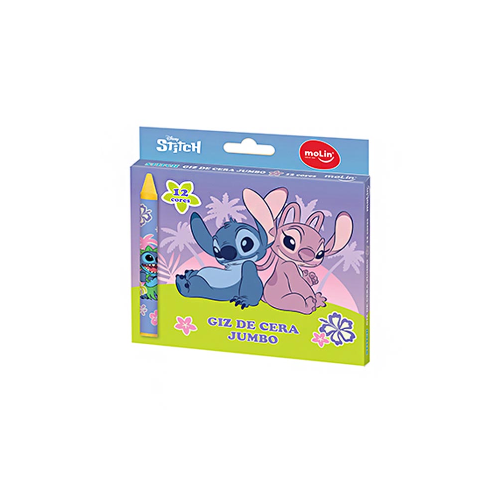 Explore um mundo de criatividade com a Caixa de Giz de Cera Jumbo 12 Cores Stitch da MOLIN!