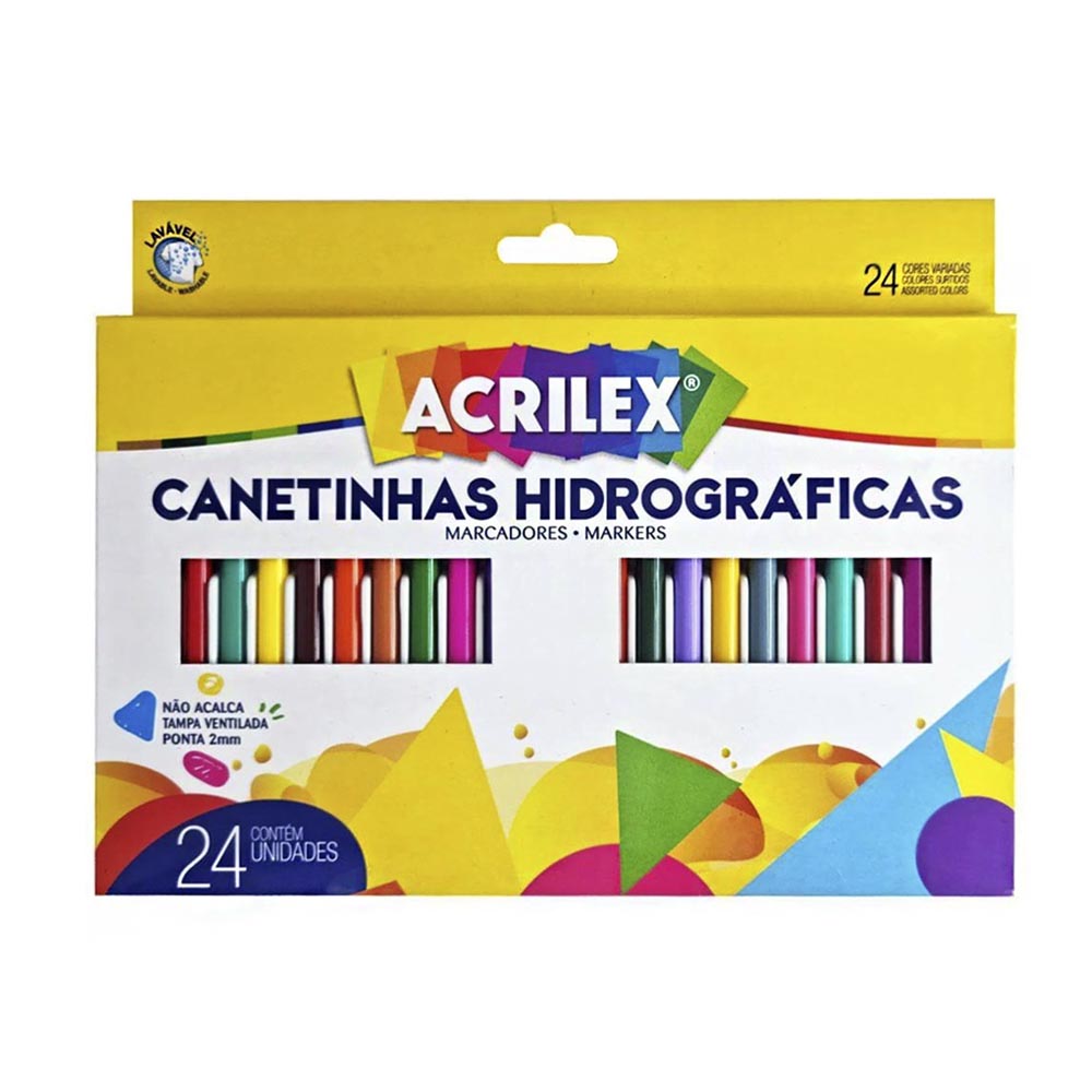 Canetinha Hidrografica Acrilex C/24 Cores Marcadores - Markers Tampa Ventilada Não Acalca Para desenhar, pintar e fazer tracejados sobre papel, papel cartão e cartolina.